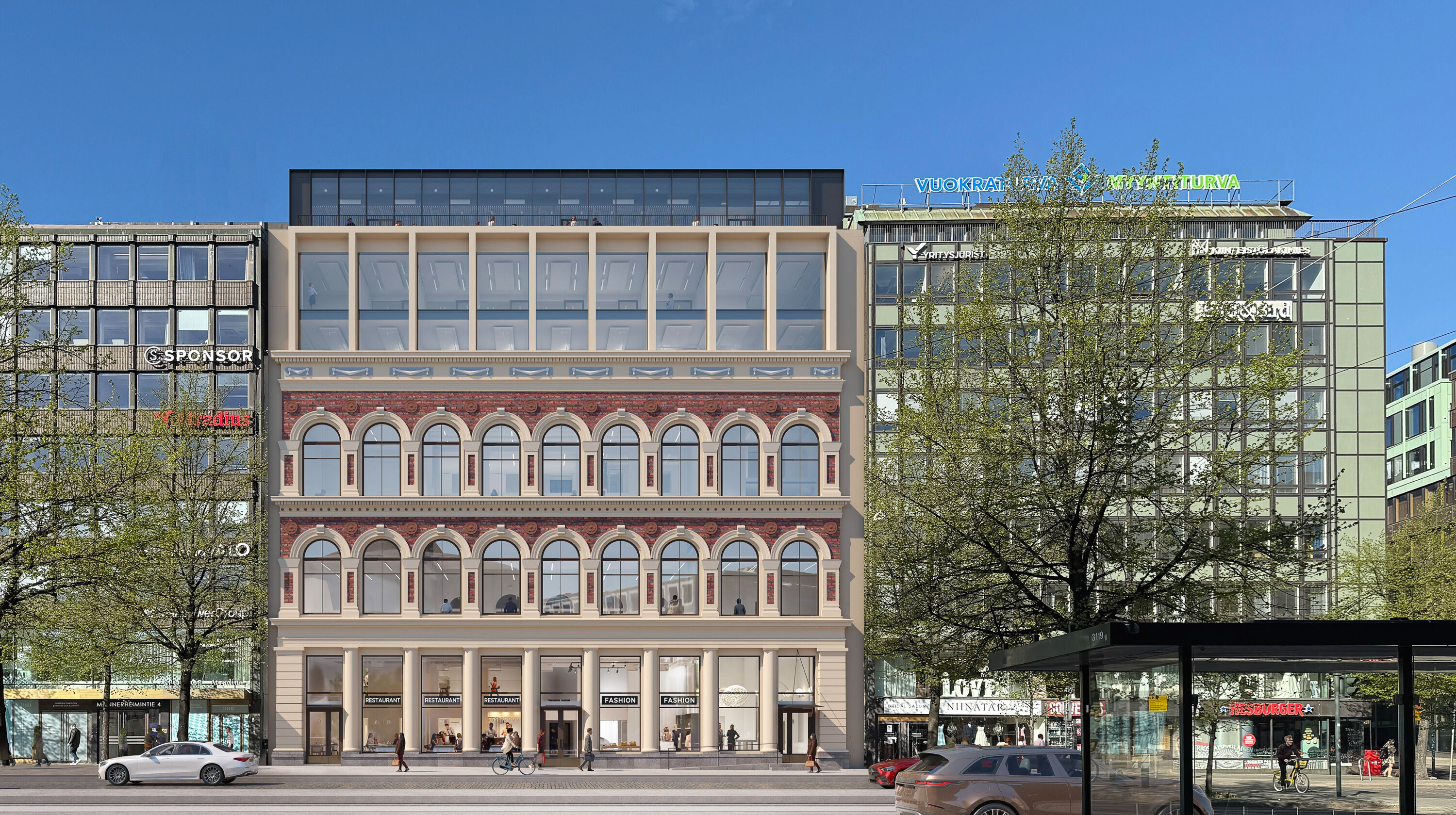 The site is equipped with modern building technology and space solutions that support mobile work. With its valuable setting, impressive façade, and additional floors the property offers fantastic opportunities to brand your own business. To the tenants, the central location guarantees the best local services and transport connections that the city has to offer. LEED Platinum level environmental certificate and energy performance certificate at A level are targeted in the construction project.
